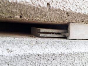 Grund der Inspektion waren eben jene Fugenprofile, welche sich über die Jahre, der Bewitterung und UV-Belastung in großer Höhe ausgesetzt, lokal gelöst oder verschoben haben. Aus den Fenstern der Räumlichkeiten des Turmes heraus sowie vom Gelände unterhalb waren Lücken in den Fugen und herausstehende Fugenprofile erkennbar. Die Situation wurde durch den Bauherren erkannt, woraufhin er uns kontaktierte. Bei einem gemeinsamen Gespräch wurde die Problematik erörtert und eine potenzielle Gefährdung beschrieben. Um diese potenzielle Gefährdung besser einordnen zu können, empfahl die SiB eine erste handnahe Inspektion der Fugen. Ziel dieser Inspektion war, das Gefahrenpotenzial besser einschätzen zu können, sich ein Bild von der Fugenkonstruktion zu machen und eine Grundlage für den nachfolgenden Umgang mit den Fassadenfugen zu erhalten.
